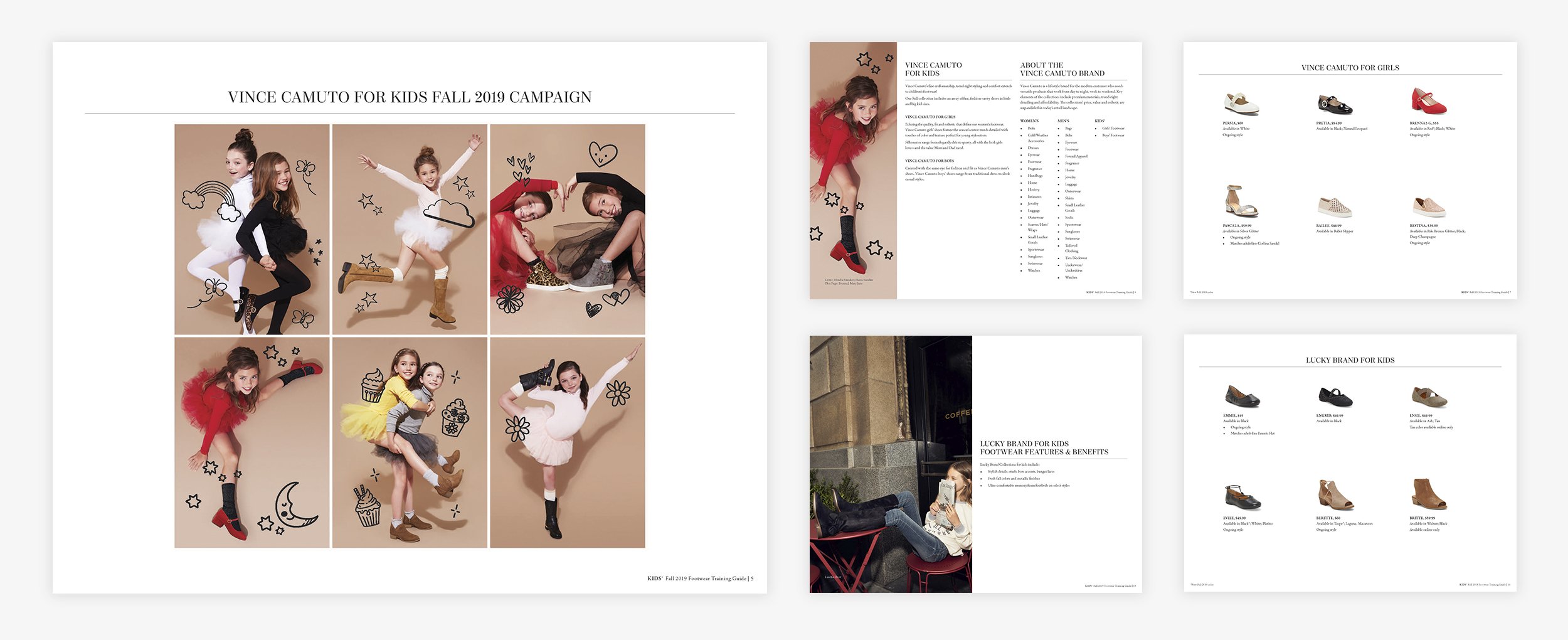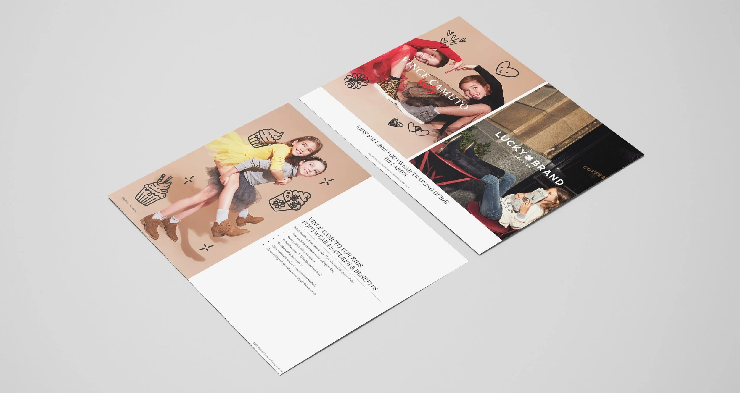 Designed printed pamphlets showcasing brands’ newest product lines and campaign imagery.